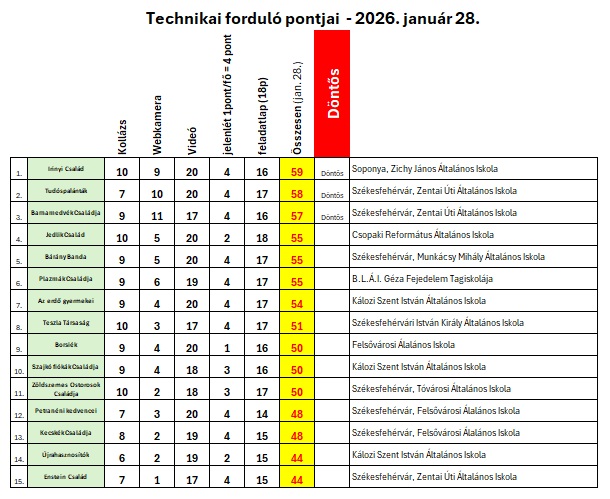 | Tudóspalánták = | Székesfehérvár, Zentai Úti Általános Iskola . DÖNTŐS |